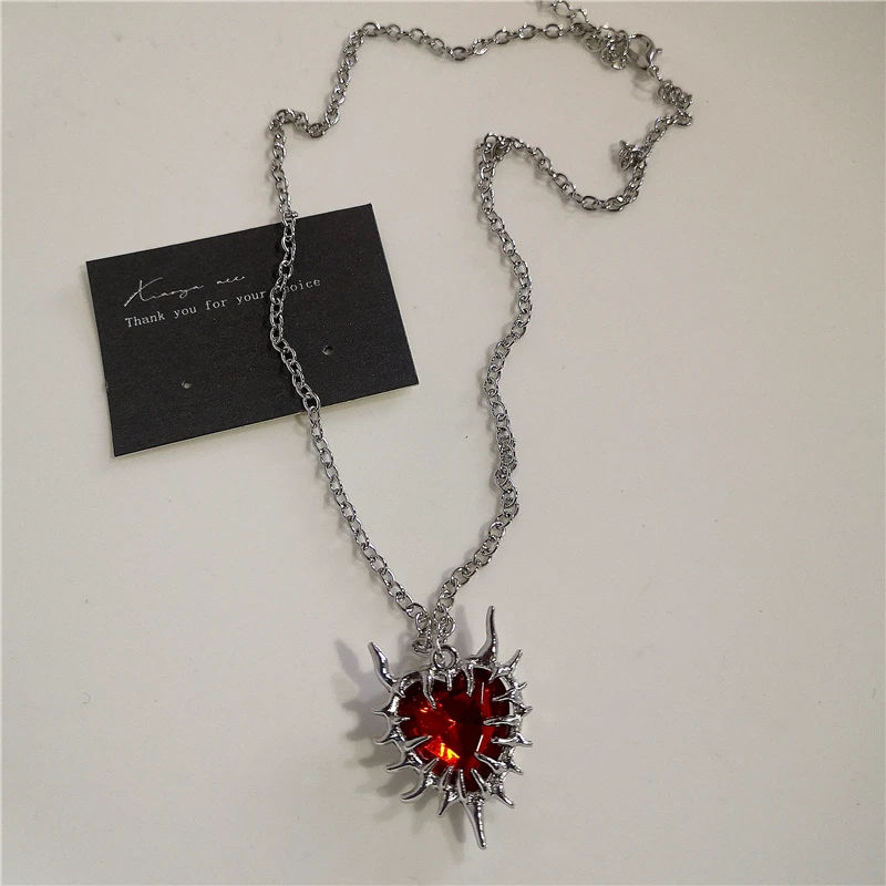 Make a powerful statement with this Gothic Red Heart Thorns Cross Necklace — a trendy blend of hip-hop, grunge, punk, and Y2K styles featuring bold chains, thorn details, and iconic symbolism for both women and men.