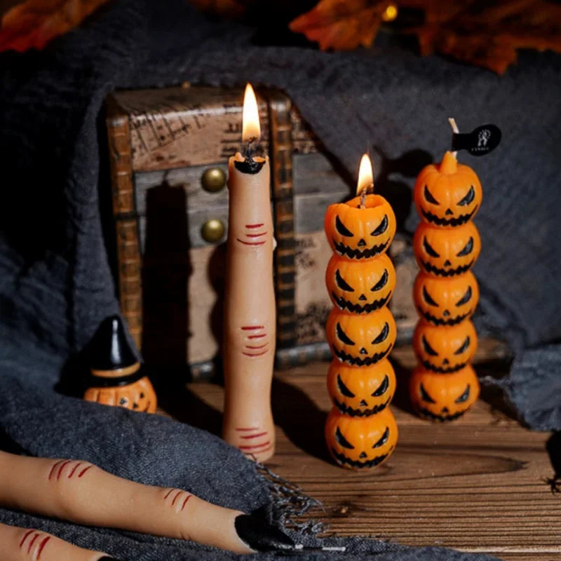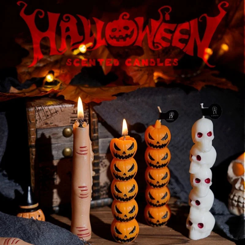 Celebrate spooky season with these creative Halloween-themed scented stick wax candles — handmade from natural soy wax and shaped like pumpkins, skulls, and creepy fingers. Perfect as small festive gifts or eerie atmosphere boosters!