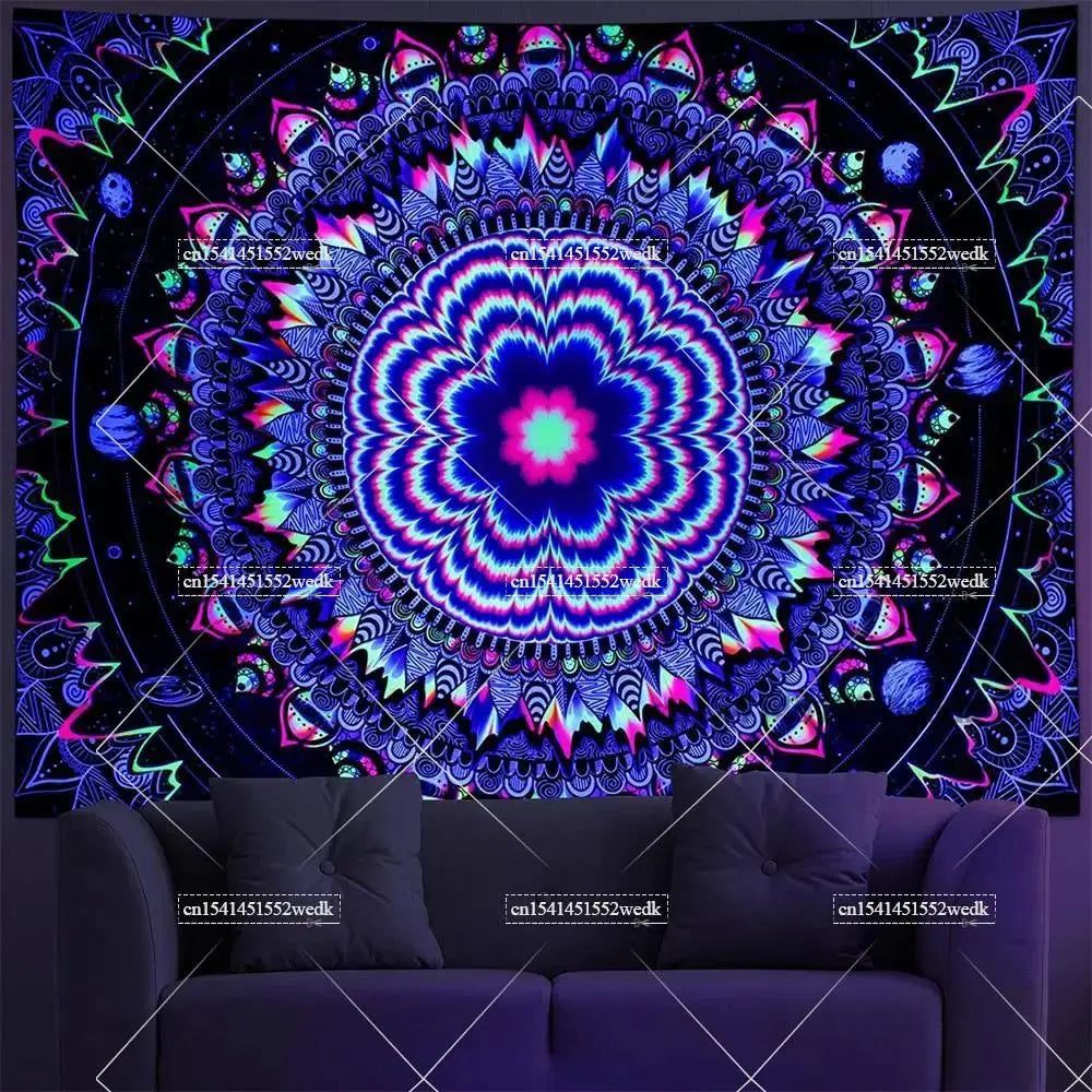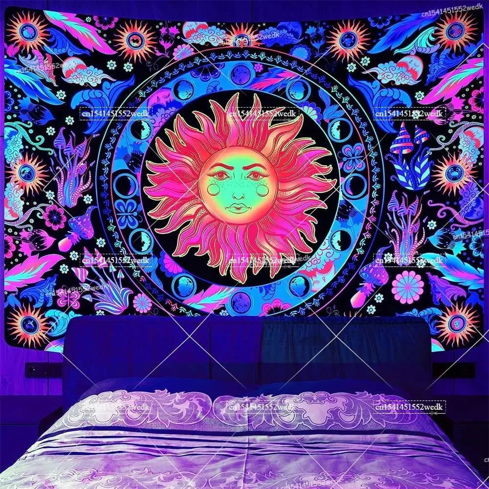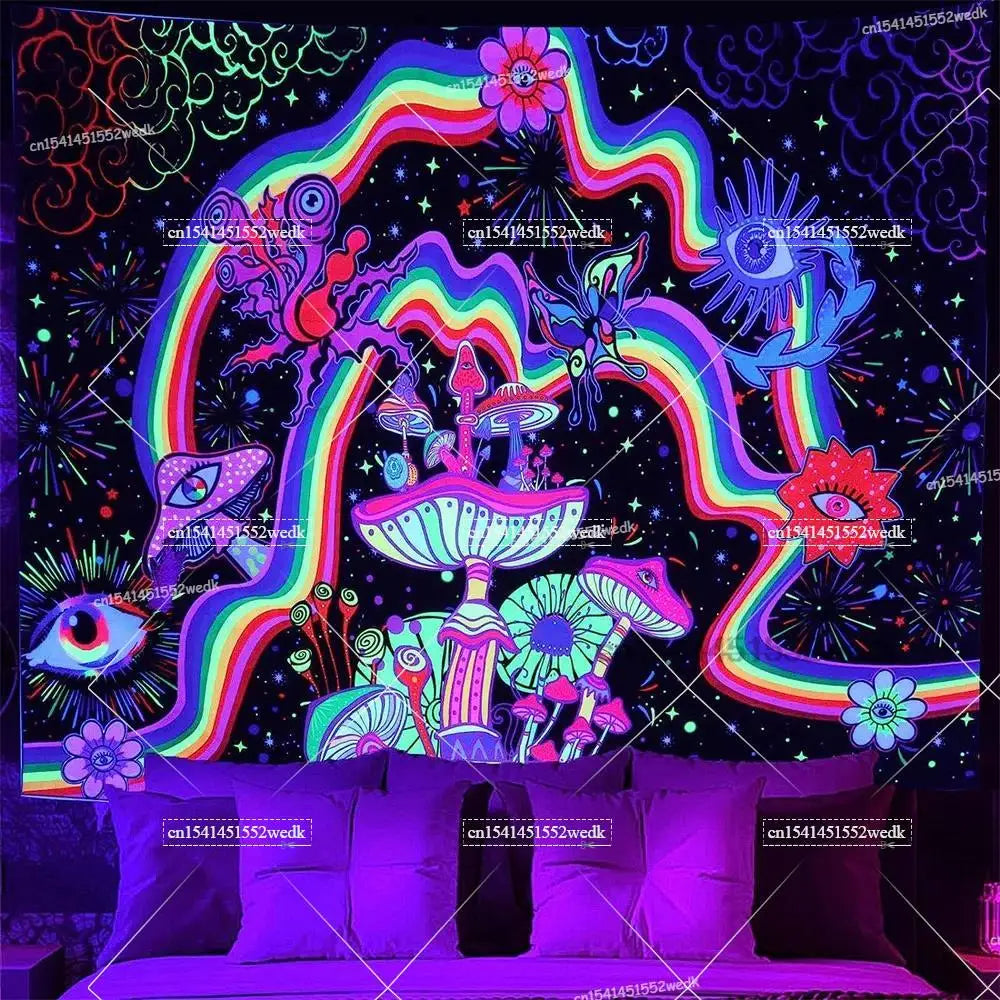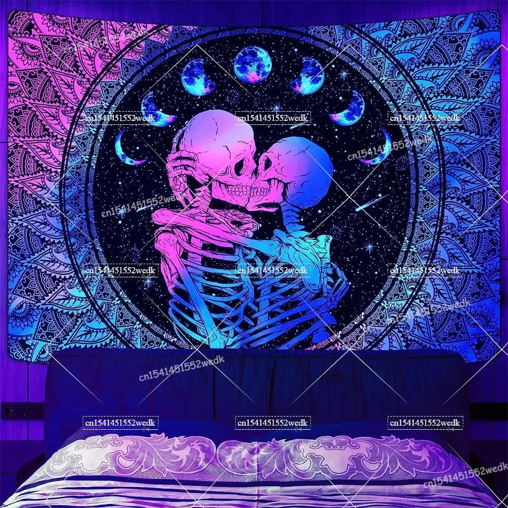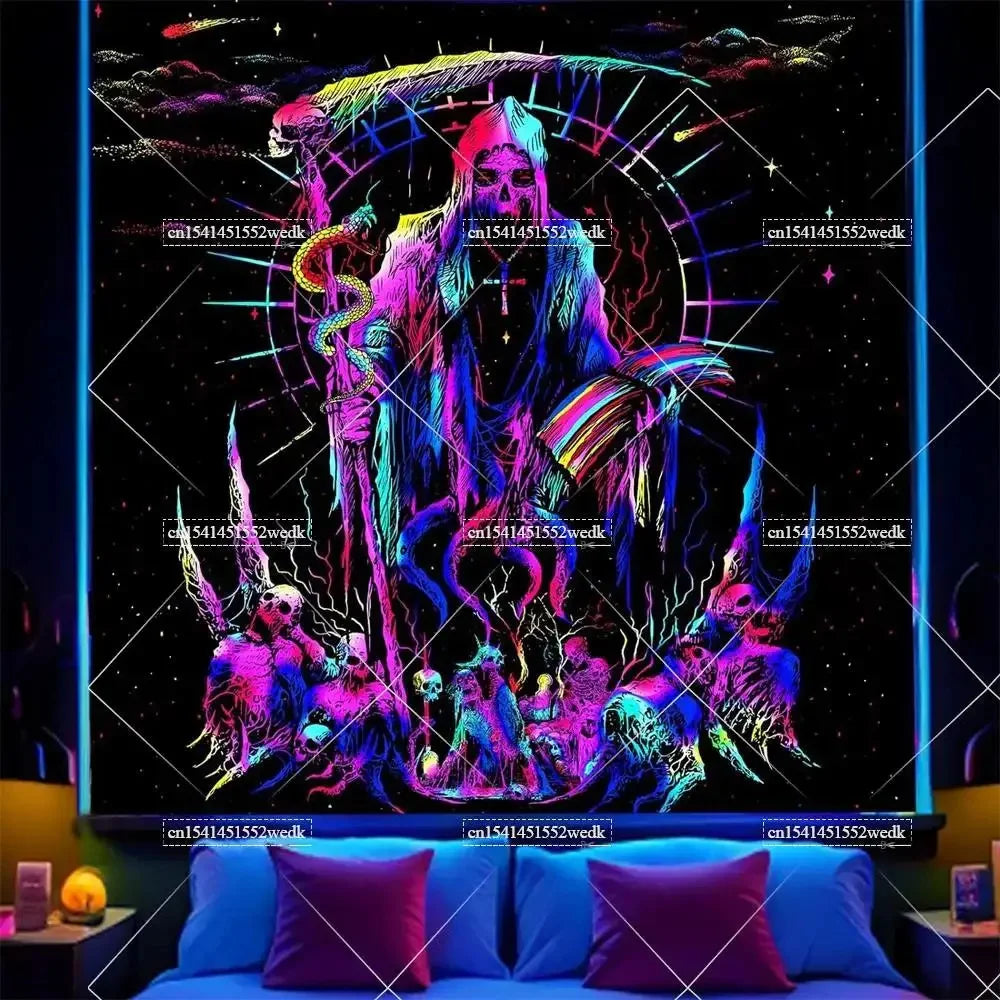 Illuminate your space with neon magic — get your Hippie Skull Blacklight Tapestry today and glow into the night!