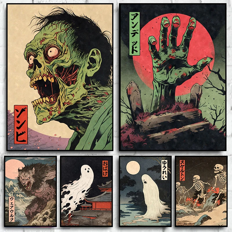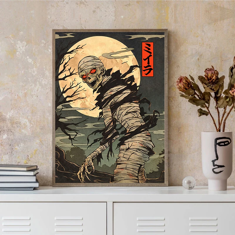 Bring eerie Japanese horror vibes to your space with this Japanese Rising Skeletons Poster — a chilling blend of ghost, zombie, and mummy imagery perfect for Halloween or year-round spooky decor.