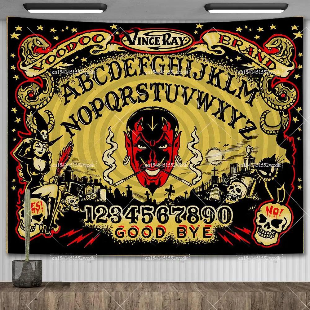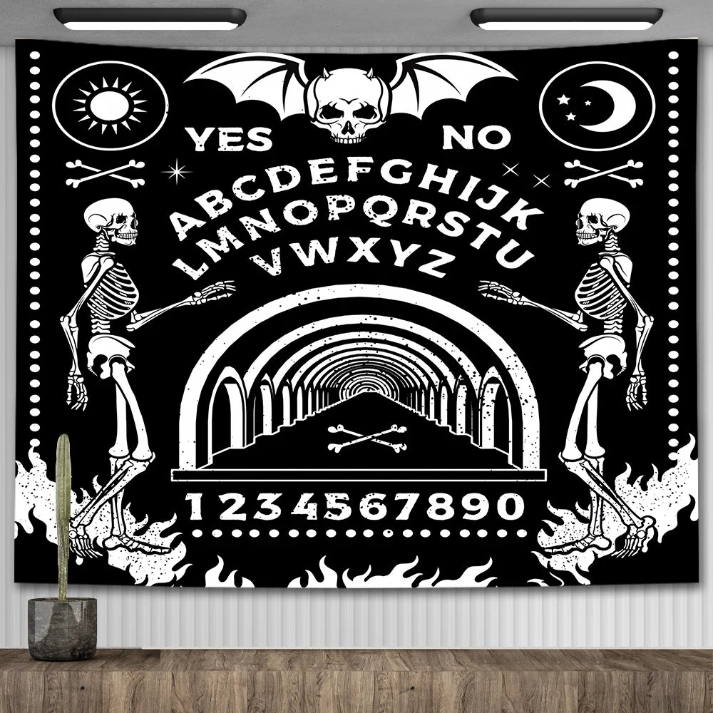 Ouija Board Mandala Tapestry – Gothic Baphomet Occult Decor for Witchcraft & Astrology