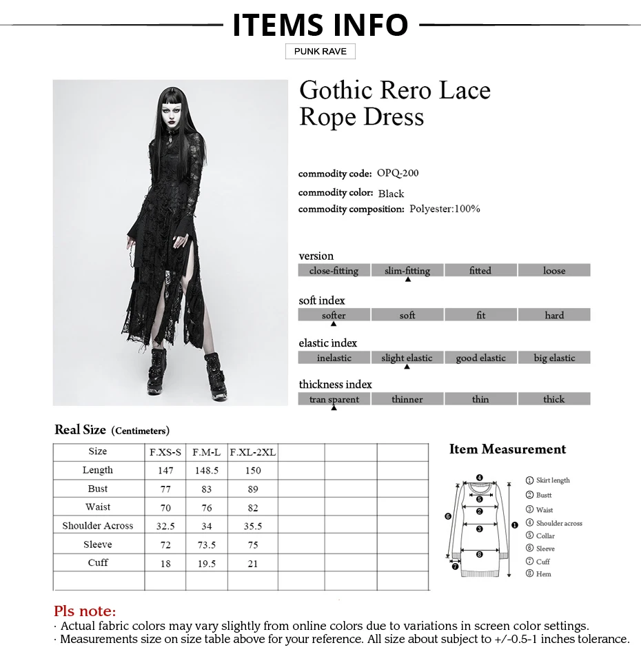 PUNK RAVE Gothic Retro Lace Rope Dress – Steampunk Inspired Sexy Rock Party Wear for Women