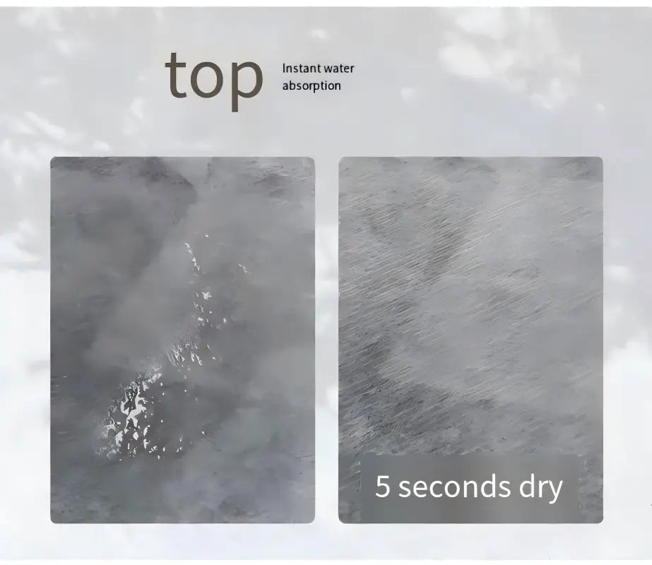 Soft and durable polyester fabric with a non-slip TPR backing, washable and dirt-resistant.