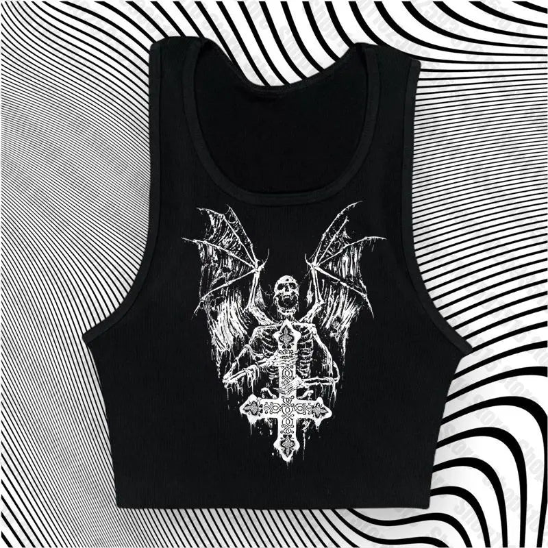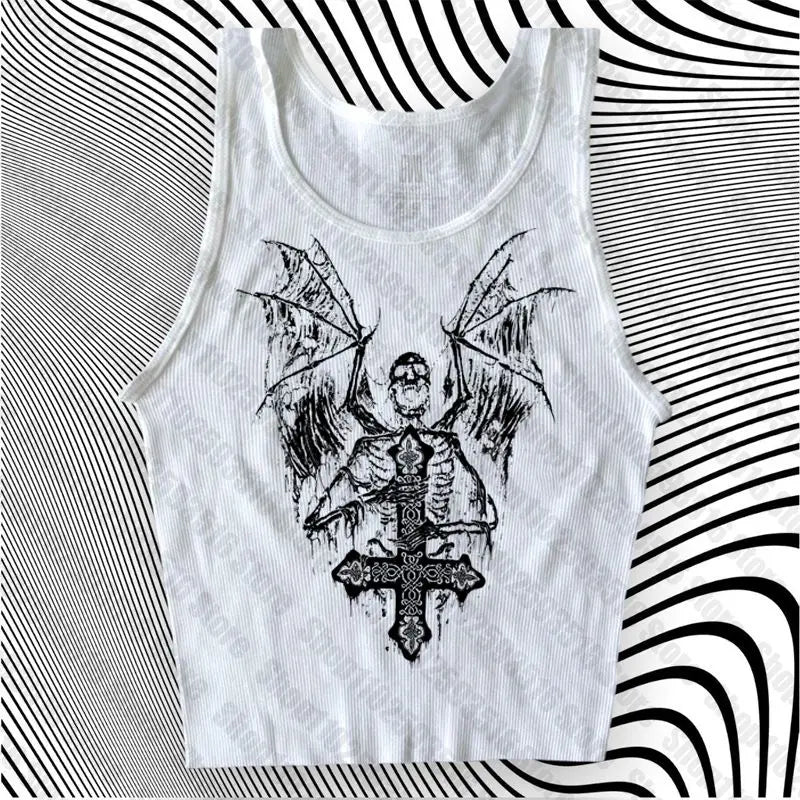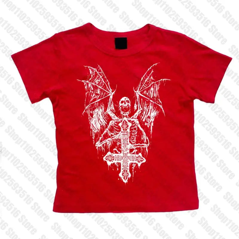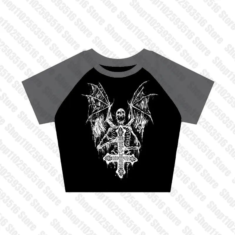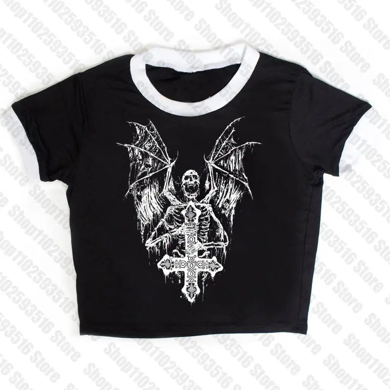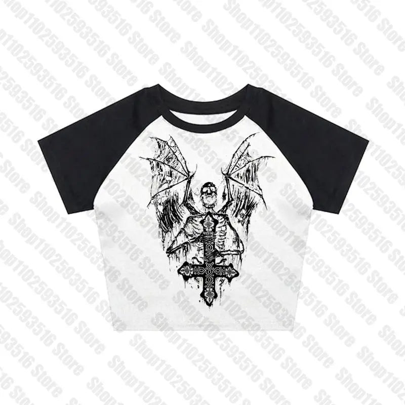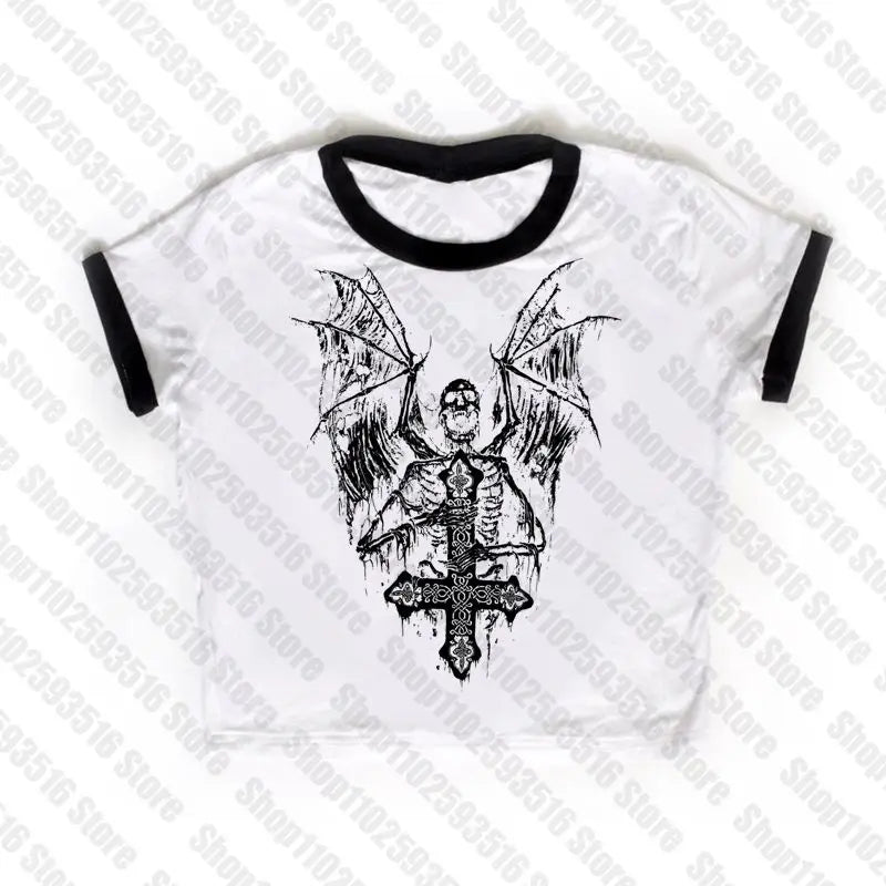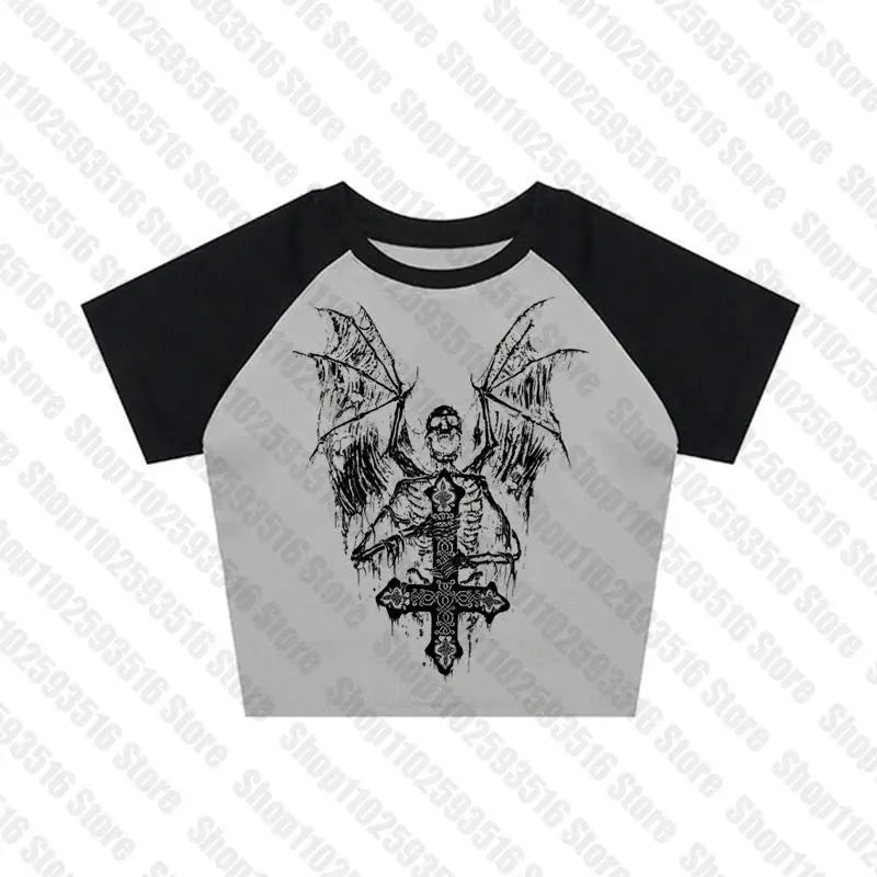 Eye-catching graphic print with Y2K, punk, and gothic influences