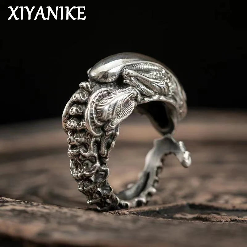 XIYANIKE Hip Hop Retro Skull Alien Adjustable Rings – Fashion Jewelry for Men & Women